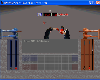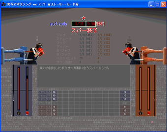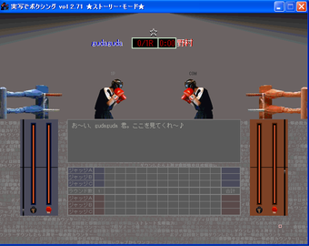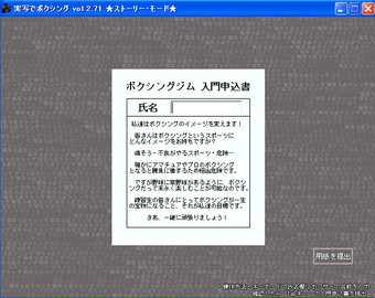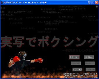 実写でボクシングはシンプルなゲームです。実写のボクサーが2Dのリングを方向キーで前後に移動しジャブ(Zキー)ストレート(Xキー)などのパンチを繰り出します。またガード(Cキー)やスウェーバックやダッキング(方向キー)などの防御技術も使用できます。ゲーム開始時には実際にボクシングジムに入会したときのようにそれぞれのパンチや防御技術をスパーリングを通して習得していきます。基本動作はここで学べますので、初心者でも非常に簡単に楽しめます。